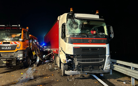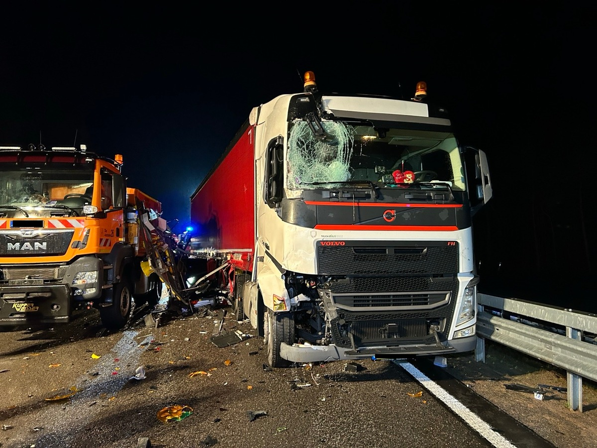 Sattelzug gerät in Vollbrand...Zweiter Sattelzug fährt in Stauende...