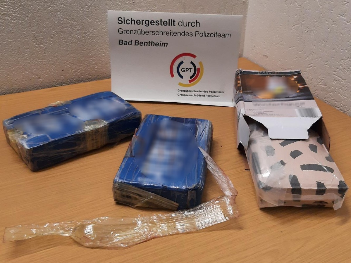 Bei der Durchsuchung des Fahrzeugs entdeckten die Polizisten in einer Sporttasche und in zwei Verstecken im Kofferraum des Autos insgesamt drei Ziegel mit zusammen rund 3,5 Kilo (brutto) Kokain. Damit endete der Drogentransport des Mannes bereits im deutsch-niederländischen Grenzraum.