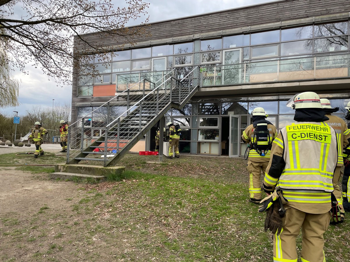 FF Bad Salzuflen: Feuer bricht in Klassenzimmer der Grundschule Knetterheide aus / Rauch breitet sich im Gebäude aus. Verletzt wird zum Glück niemand.