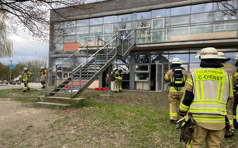 FF Bad Salzuflen: Feuer bricht in Klassenzimmer der Grundschule Knetterheide aus / Rauch breitet sich im Gebäude aus. Verletzt wird zum Glück niemand. - Foto: presseportal.de