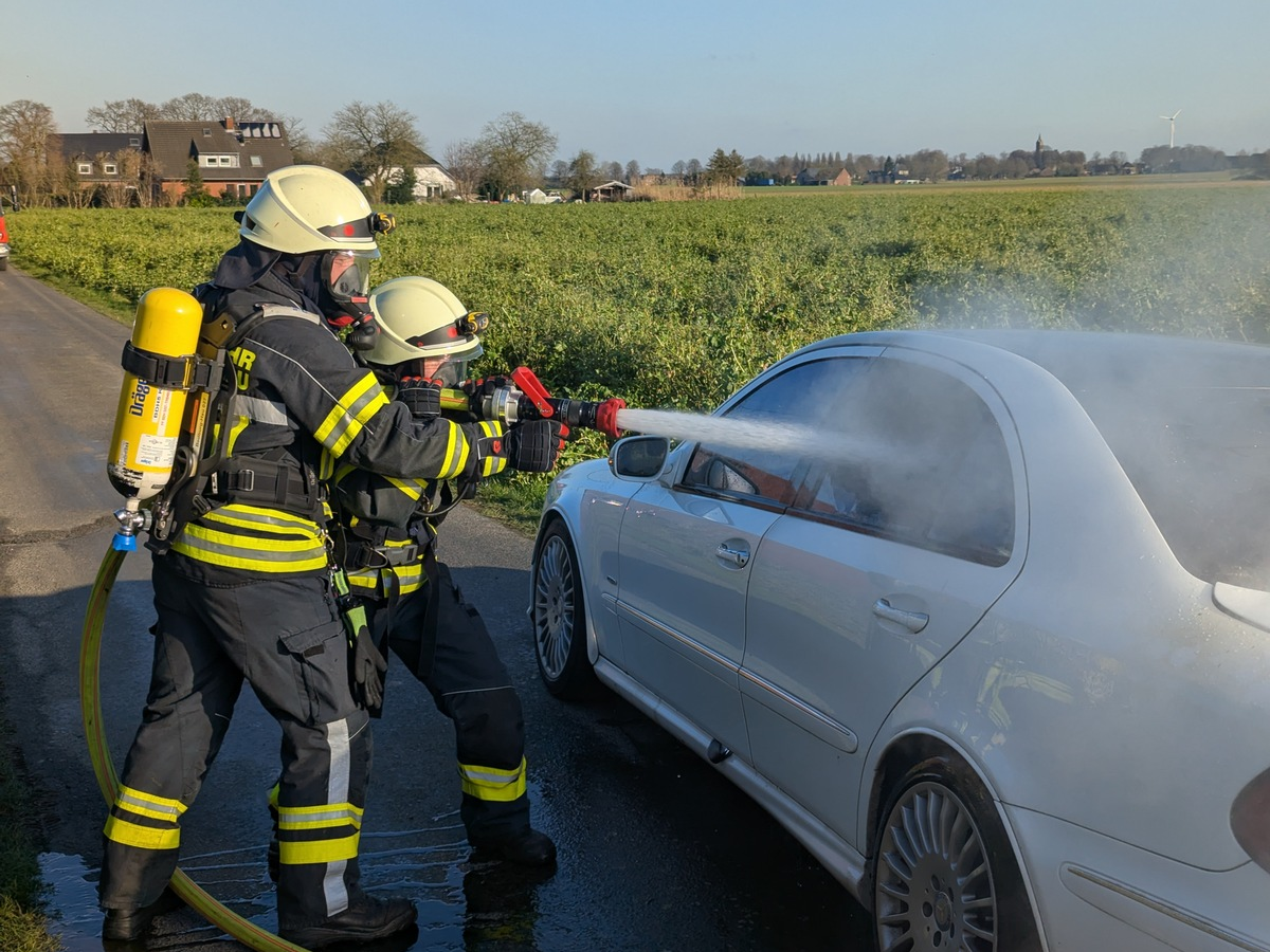 01.02.2025 - 18:00:01 | presseportal.deBeim Eintreffen der Feuerwehr drang eine starke Rauchentwicklung aus dem Inneren des Mercedes. Zwei EinsatzkrÀfte unter Atemschutz gingen sofort mit einer sogenannten C-Angriffsleitung zur BrandbekÀmpfung vor. Dazu musste im Verlauf auch der Kofferraum gewaltsam geöffnet werden, um letzte Glutnester abzulöschen.
