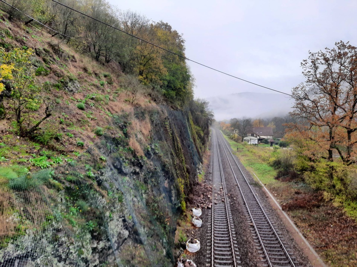 Norheim/Staudernheim - Am Morgen des 13. November 2023 gegen 05:50 Uhr bemerkte ein Mitarbeiter der Deutschen Bahn, dass es auf der Bahnstrecke Norheim - Staudernheim zu einem Erdrutsch gekommen ist. An einem Hang im Gleisabschnitt in der NĂ€he der "NiederthĂ€ler Höfe" lösten sich Teile einer Mauer und das Erdreich. Die Teile der Mauer und Erde blockieren seitdem die Gleise auf einer FlĂ€che von ca. 20 qm. Die Bahnstrecke wurde daraufhin komplett gesperrt. Die AufrĂ€umarbeiten vor Ort dauern an. Die BeeintrĂ€chtigungen fĂŒr den Bahnverkehr werden noch mehrere Stunden andauern, da die Bahnstrecke erst freigegeben werden kann, wenn der Hang abgesichert ist und die AufrĂ€umarbeiten abgeschlossen sind. Durch den Erdrutsch wurden keine Personen gefĂ€hrdet. Warum sich das Erdreich löste und die Teile der Mauer in den Gleisbereich stĂŒrzten, wird durch die Bundespolizei Kaiserslautern ermittelt. Zum derzeitigen Zeitpunkt liegen noch keine Erkenntnisse ĂŒber das AusmaĂ und die Höhe des Schadens vor.