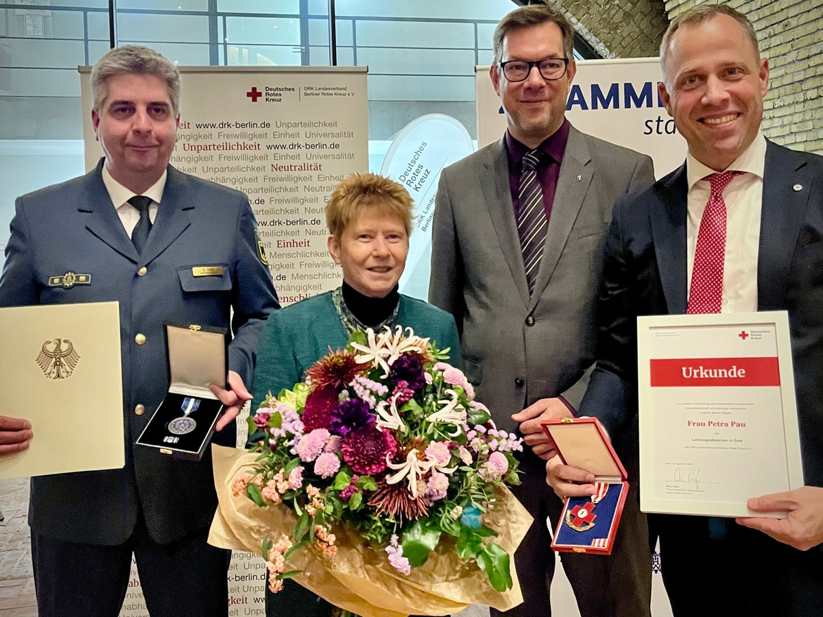 THW LVBEBBST: Doppelte Ehrung für Petra Pau - DRK Berlin und THW würdigen langjähriges ehrenamtliches Engagement - Foto: presseportal.de