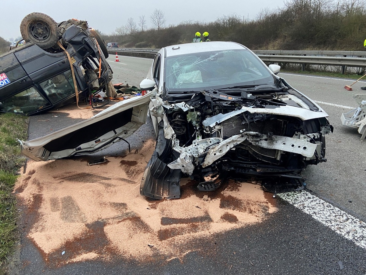 Börrstadt/A 63 - Gegen 17:05 Uhr kam es auf der A 63, zwischen den Anschlussstellen Göllheim und Winnweiler zu einem Verkehrsunfall zwischen zwei Pkw. Aus bisher noch unbekannter Ursache fuhr ein 32jähriger aus dem Donnersbergkreis mit seinem Pkw Mazda mit großer Wucht auf den vorausfahrenden Pkw Land Rover eines 58jährigen aus dem Kreis Kusel auf. Der Land Rover schleuderte nach rechts von der Fahrbahn, überschlug sich in der angrenzenden Böschung und kam auf dem Dach zum Liegen. Der Mazda prallte nach dem Anstoß zunächst gegen die Mittelschutzplanken und kam dann auf dem rechten Fahrstreifen zum Stehen. Der Fahrer des Mazda wurde leicht verletzt, der Fahrer des Land Rover wurde schwer verletzt. Zur Klärung der genauen Unfallursache wurde ein Gutachter eingeschaltet. Der Gesamtschaden beträgt ca. 60 000,- EUR. Aufgrund des großen Trümmerfeldes war die A 63 bis zur Bergung der Fahrzeuge für 2,5 Stunden halbseitig gesperrt. Gegen den Fahrer des Mazda wurde ein Strafverfahren eingeleitet.|PAST