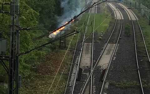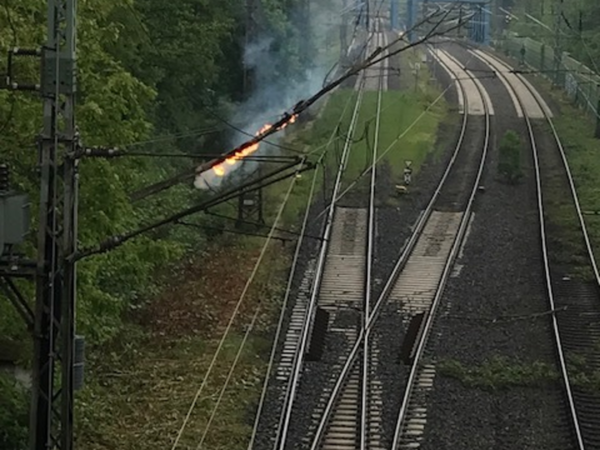 Im Laufe des Einsatzes ist der brennende Baum in mehrere Teile zerbrochen und in den Gleisbereich gefallen. Die Kräfte der Feuerwehr konnten den nun sicheren Bereich betreten und die brennenden Teile mit einem Feuerlöscher ablöschen. Für den mehrstündigen Einsatz war die dreigleisige Bahnstrecke voll gesperrt. (Ly)