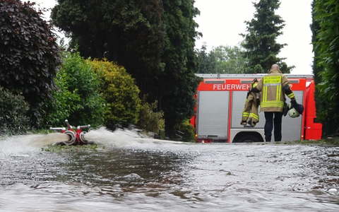 An einer Gaststätte an der Wilhelm-Tell- Straße drohte das Regenwasser von einer Parkfläche einen Keller zu überfluten.Die Feuerwehr pumpte etwa 15.000 Liter Wasser vom einem Grundstück in die ca. 60 Meter entfernte Kanalisation.