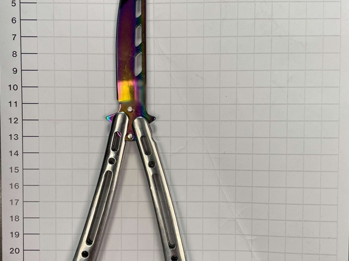 Bei einer Durchsuchung stellten die Beamten dann aber ein Butterflymesser fest. Dabei handelt es sich um ein Faltmesser mit zweigeteilten, auf einer Ebene schwenkbaren Griffen.