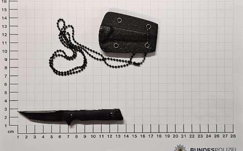 Gegen 16:50 Uhr bestreiften Bundespolizisten den Hauptbahnhof Gelsenkirchen. Dabei fiel ihnen ein 44-Jähriger auf, welcher ein "Neck Knife"-Messer sichtbar um den Hals trug. Dabei handelt es sich um ein Messer, welches für das Tragen am Hals konzipiert ist. Dieses Messer ist in seiner Größe so angepasst, dass es bequem mit sich geführt werden kann ohne viel Platz zu beanspruchen. Die Klinge des "Neck Knife" ist feststehend.