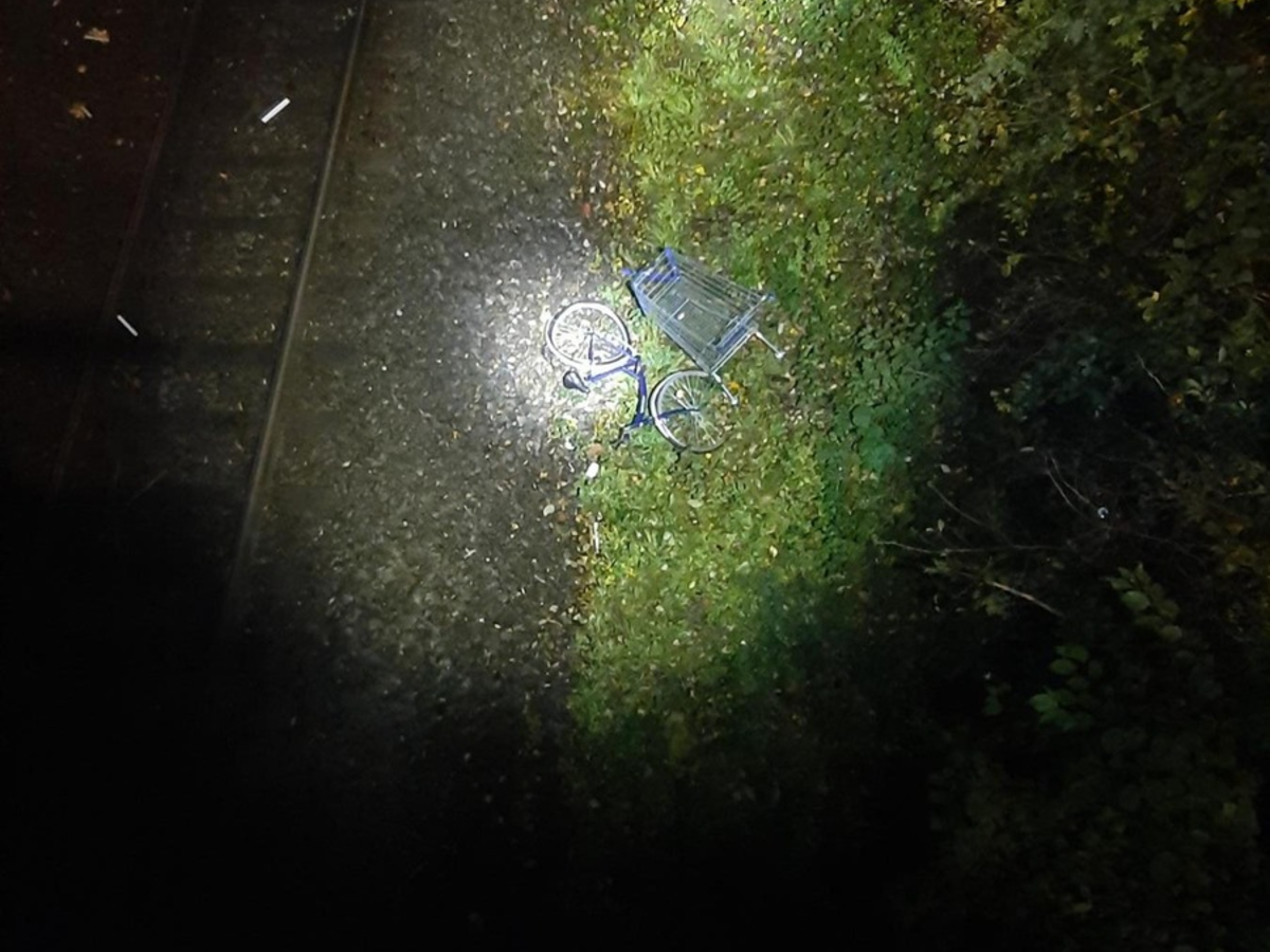 Die Einsatzkräfte begaben sich anschließend zu der Stelle des Aufpralls, dem Brückenübergang des Bahnhofs Dortmund-Huckarde. Dort stellten sie zwei Einkaufswagen, sowie ein Fahrrad fest.