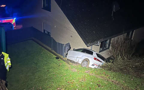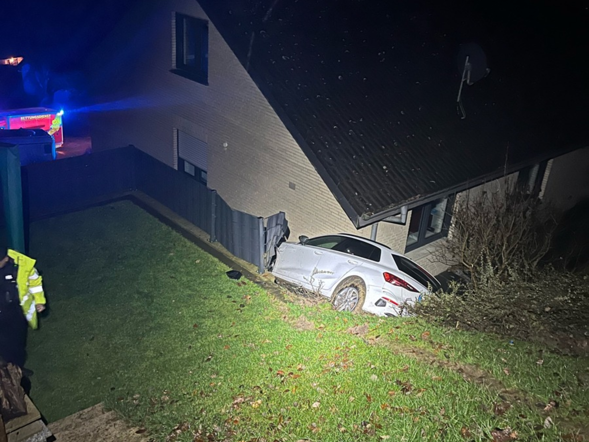 Pkw rutscht Abhang herunter und prallt gegen eine Hauswand
