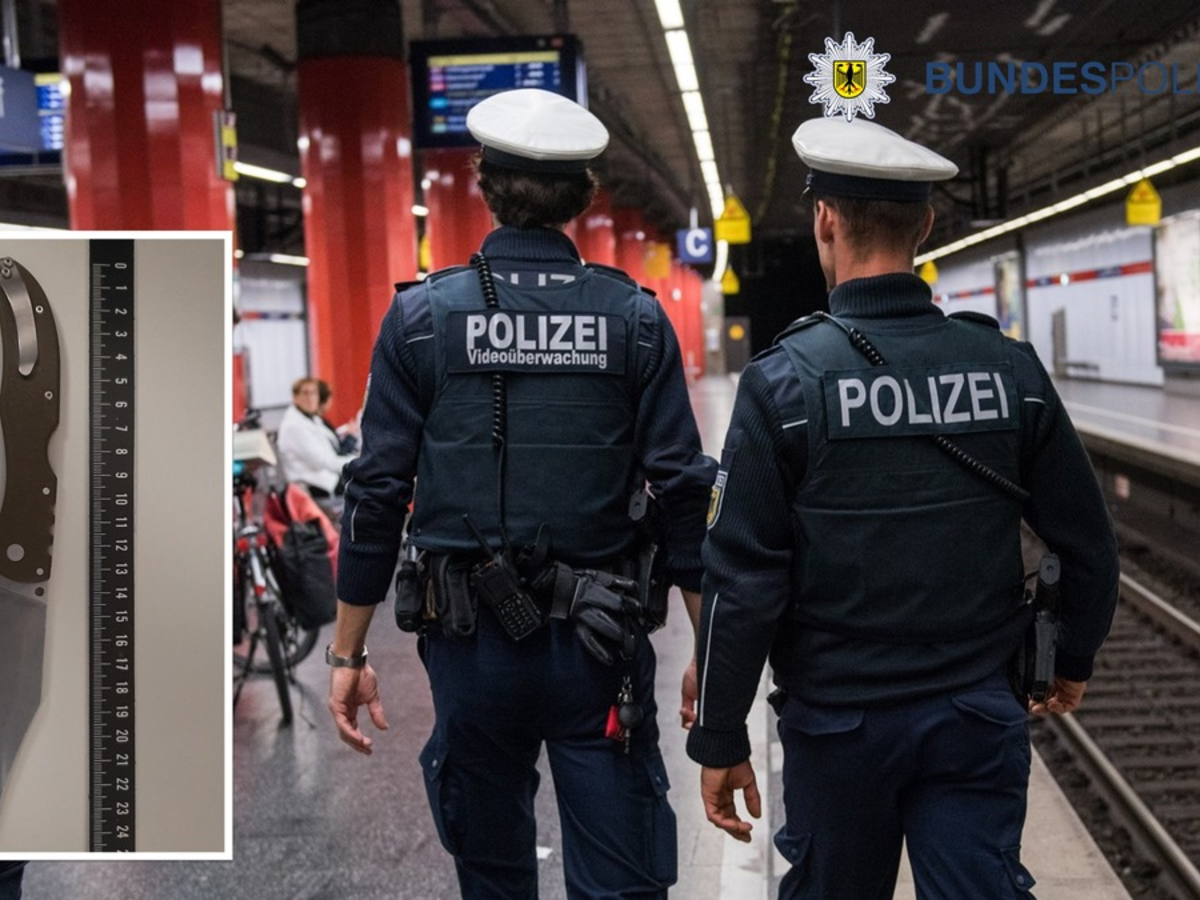 Kurz nach 5 Uhr hielten sich drei Deutsche aus dem Landkreis Fürstenfeldbruck im Alter von 19 bzw. 20 Jahren am Mittelbahnsteig des Münchner Hauptbahnhofes auf und unterhielten sich. Von der Unterhaltung fühlte sich ein 41-jähriger deutscher Kraillinger offenbar gestört und sprach die jungen Männer aggressiv an. Als er ihnen Schläge androhte und in bedrohlicher Manier auf sie zuging, stieß der 19-Jährige den Mann von sich. Daraufhin holte dieser ein Messer aus seiner Jackentasche, öffnete es und hielt es in Richtung der drei Männer. Die Drei entfernten sich aus der Situation und sprachen im Zwischengeschoss eine Fußstreife der Bundespolizei an, um sie um Hilfe zu bitten. Gemeinsam begaben sie sich zurück zum S-Bahnsteig, wo der 41-Jährige noch immer verweilte. Auf die Ansprache der Beamten reagierte der augenscheinlich Alkoholisierte aggressiv. Beim Abtasten konnten die Polizisten das Messer sicherstellen. Anschließend brachten sie ihn gefesselt zur Wache. Während der polizeilichen Maßnahmen meldeten sich zwei afghanische Staatsangehörige im Alter von 21 und 22 und gaben an, ebenfalls mit dem Messer von dem Kraillinger bedroht worden zu sein. Der 21-Jährige wurde dabei am kleinen Finger verletzt und trug eine leichte Schnittwunde davon, die keiner ärztlichen Behandlung bedurfte. Ein freiwillig durchgeführter Atemalkoholtest ergab einen Wert von 2,5 Promille. Auf Weisung der Staatsanwaltschaft wurde der Mann, nachdem er in den Gewahrsamsräumen der Bundespolizei ausgenüchtert war, auf freien Fuß belassen. Gegen ihn wird wegen Bedrohung und gefährlicher Körperverletzung ermittelt.