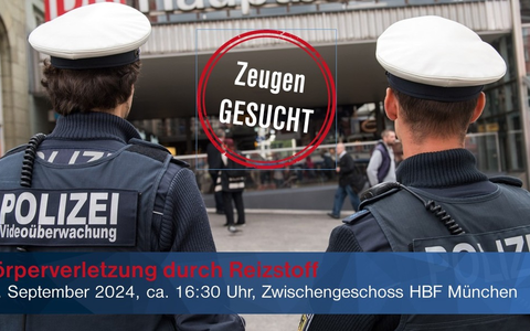 Nach derzeitigem Ermittlungsstand kann nicht ausgeschlossen werden, dass weitere Unbekannte von dem Reizstoff getroffen wurden. Sie werden gebeten, sich bei der Bundespolizei unter der Rufnummer 089 515 550 0 zu melden. Ebenso Personen die Hinweise zum Tatverdächtigen geben können.