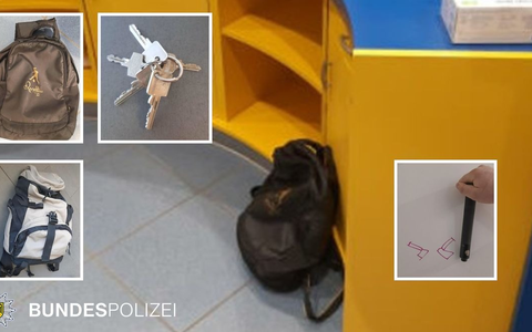 Parallel zur Anzeigenaufnahme wurde in der Schließfachanlage in der Nähe ein herrenloses Gepäckstück gemeldet. Eine Absuche mittels Sprengstoffspürhund konnte eine Gefahr für Reisende ausschließen. Bei der Eigentumssicherung des Rucksackes konnte dieser zweifelsfrei dem Italiener zugeordnet werden. Das gesamte Diebesgut befand sich noch darin.