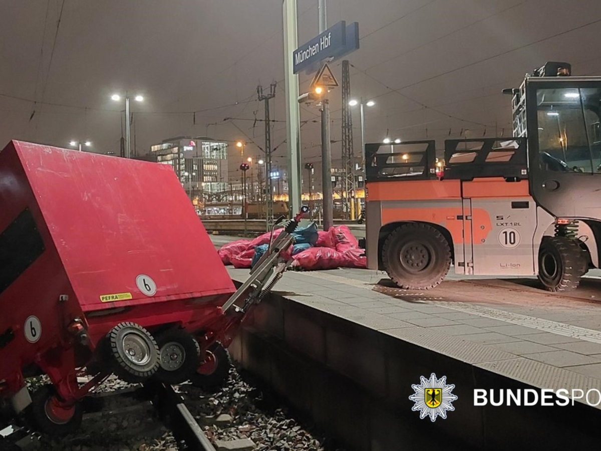 München - Am Donnerstagabend (11. Dezember) kam es am Bahnsteig 5/6 zu einem Unfall mit einem elektrischen Transportfahrzeug. Die betroffenen Gleise mussten daraufhin gesperrt und die Oberleitung geerdet werden. Verletzt wurde niemand. Ein 62-jähriger Mitarbeiter der Deutschen Bahn fuhr gegen 19:15 Uhr mit einem Elektrofahrzeug mit Ladefläche samt Anhänger auf dem Bahnsteig der Gleise 5 und 6. Beim Versuch das Gespann zu wenden, kippte der Anhänger und fiel in den Gleisbereich. Die Deutsche Bahn veranlasste aufgrund dessen eine Sperrung des betroffenen Gleises. Alarmierte Bundespolizisten nahmen den Sachverhalt auf und das hinzugezogene Technische Hilfswerk München barg den Anhänger aus dem Gleisbereich. Für die Bergungsmaßnahmen musste die Oberleitung abgeschaltet und durch den Notfallmanager der Deutschen Bahn geerdet werden. Hierfür wurde auch das Gleis 6 gesperrt. Nachdem der Anhänger von den Gleisen entfernt worden war, konnte die Sperrung gegen 22:00 Uhr wieder aufgehoben werden. Der Fahrer, der zum Unfallzeitpunkt nicht alkoholisiert war, erlitt keine Verletzungen. Der Sachschaden beläuft sich auf mehrere Hundert Euro.