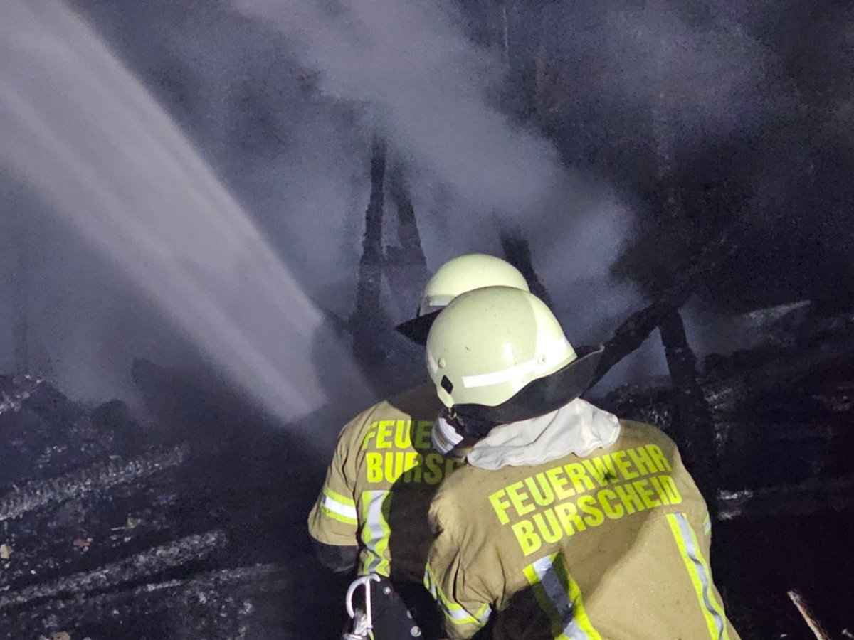 Die Wasserversorgung wurde über mehrere Hydranten sichergestellt, unter anderem auch über einen Hydranten entlang der B51. Insgesamt waren rund 45 Einsatzkräfte der Feuerwehr Burscheid im Einsatz. Der Schuppen wurde durch das Feuer vollständig zerstört. Eine Ausbreitung des Brandes auf das angrenzende Wohnhaus sowie auf umliegende Sträucher und Büsche konnte jedoch erfolgreich verhindert werden.