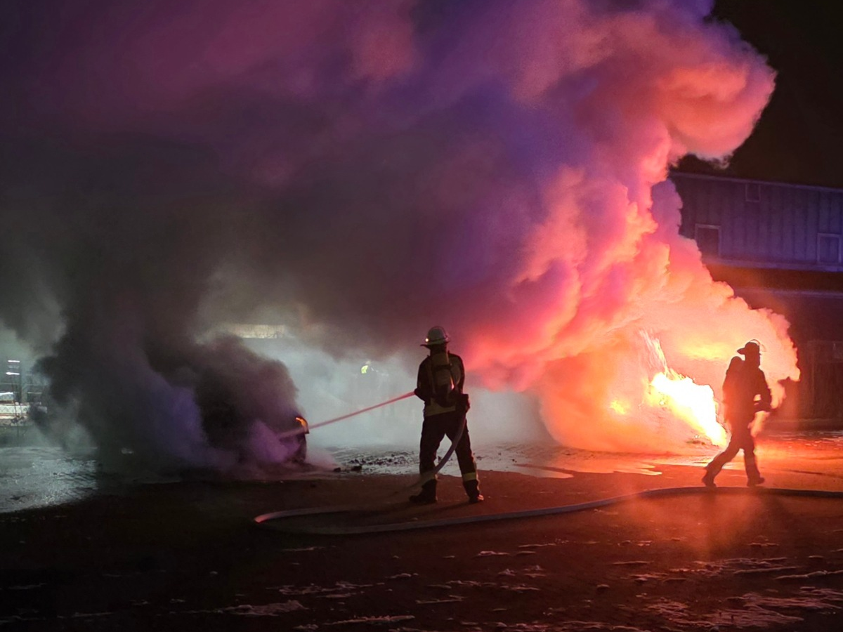 10.02.2026 - 02:13:40 | presseportal.deBei Eintreffen der Einsatzkräfte bestätigte sich die Meldung. Zwei Fahrzeuge mit Verbrennungsmotor brannten im Bereich des Motors in Vollbrand. Die Gefahr einer Ausbreitung auf weitere Fahrzeuge bestand nicht. Im Rahmen der Brandbekämpfung kamen zwei C-Rohre zum Einsatz. Zur Brandursache kann die Feuerwehr keine Angaben machen.
