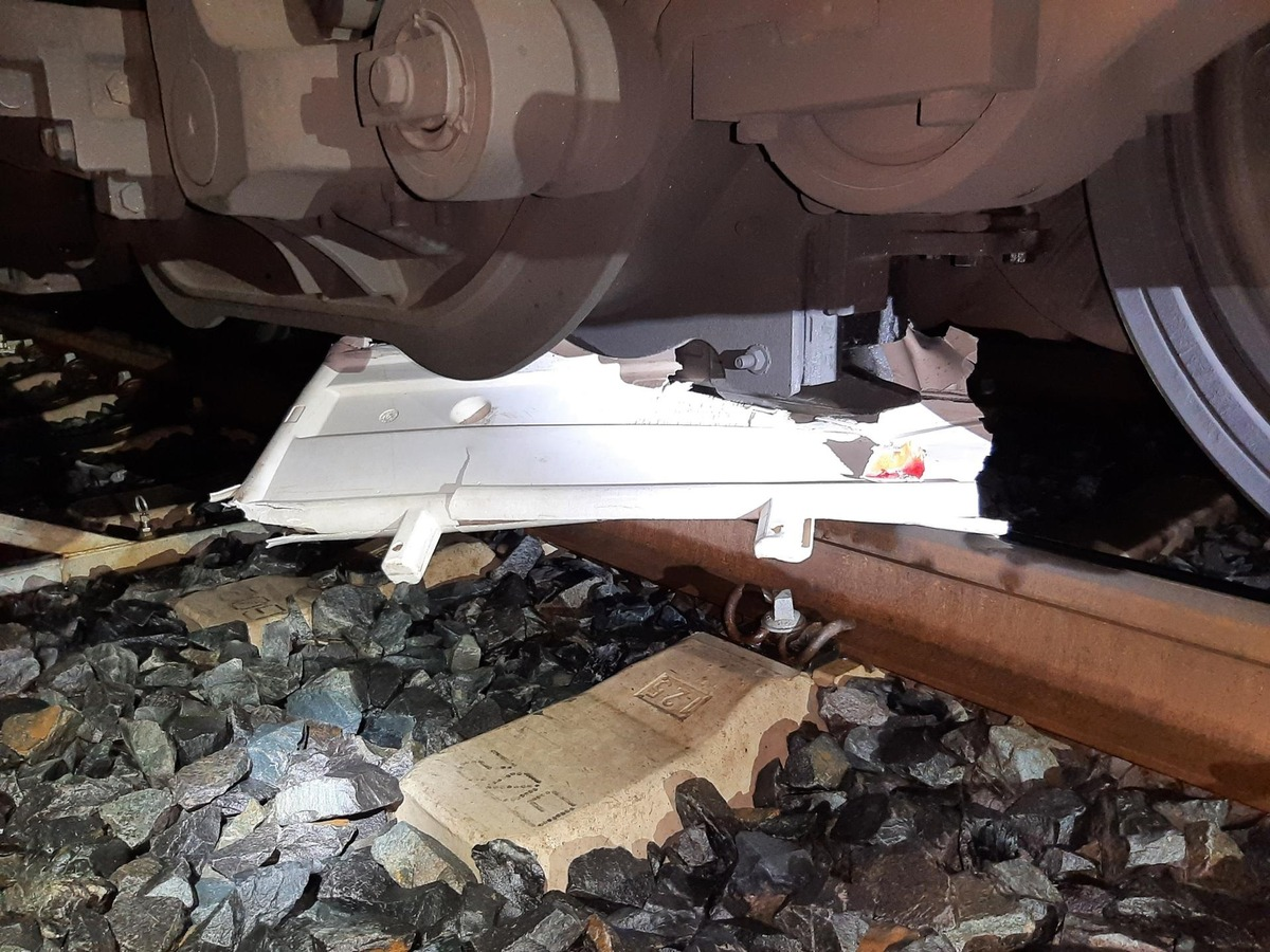 05.02.2024 - 11:02:21 | presseportal.deEine Streife der Bundespolizei begab sich vor Ort. Dort stellten die Beamten fest, dass unbekannte Täter eine Baustellenabsperrung in die Gleise geworfen hatten. Der Triebfahrzeugführer erkannte das Hindernis noch, konnte jedoch trotz eingeleiteter Schnellbremsung eine Kollision nicht verhindern und überfuhr den Bauzaun, welcher sich unter dem Zug verkeilte.