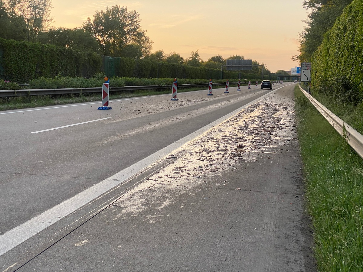 Durch die Abfälle wurde die Fahrbahn im Bereich der derzeitigen halbseitigen Verschwenkung so stark verschmutzt, dass diese durch eine Spezialreinigungsfirma umfangreich gereinigt werden musste. Für die Zeit der Reinigung musste die Fahrbahn von 01:30 Uhr bis 04:00 Uhr voll gesperrt werden.