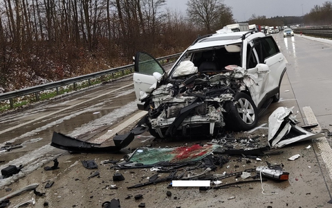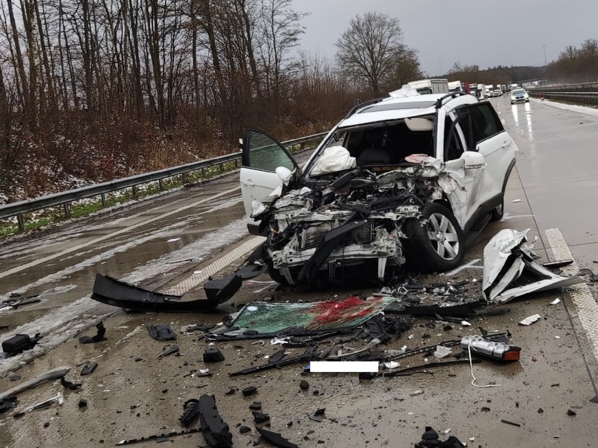 Aufgrund des sich bildenden Rückstaus verringerte der Fahrzeugführer eines Sattelzuges seine Geschwindigkeit. Dies übersah der Fahrzeugführer eines mit drei Personen besetzten PKW zu spät und kollidierte mit dem Heck des Fahrzeuges. Aus diesem PKW wurde eine Person aus dem Fahrzeug geschleudert und erlitt lebensgefährliche Verletzungen. Eine Person wurde schwer, die Dritte leicht verletzt. Der Fahrzeugführer des Sattelzuges blieb unverletzt.