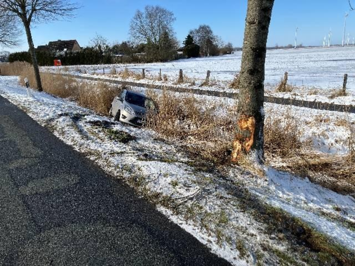 Nordleda - Am Samstag gegen 11:30 Uhr befuhr der 72jährige Fahrzeugführer eines Ford C-Max die Otterndorfer Straße in Nordleda. Hier versuchte er trotz Winterglätte einen anderen PKW zu überholen, geriet jedoch ins Schleudern, prallte gegen einen Straßenbaum und endete schließlich im Graben. Der Fahrzeugführer wurde hierbei schwer verletzt und in der weiteren Folge durch den Rettungsdienst in ein Krankenhaus verbracht. Der entstandene Sachschaden dürfte mehrere Tausend Euro betragen. Während der Unfallaufnahme stellten die Polizeibeamten fest, dass an dem PKW lediglich Sommerreifen montiert waren und die fällige Hauptuntersuchung bereits mehr als 8 Monate überfällig war. Gegen den Fahrzeugführer wurden diverse Verkehrsordnungswidrigkeitenverfahren eingeleitet. (Lichtbild im Anhang)