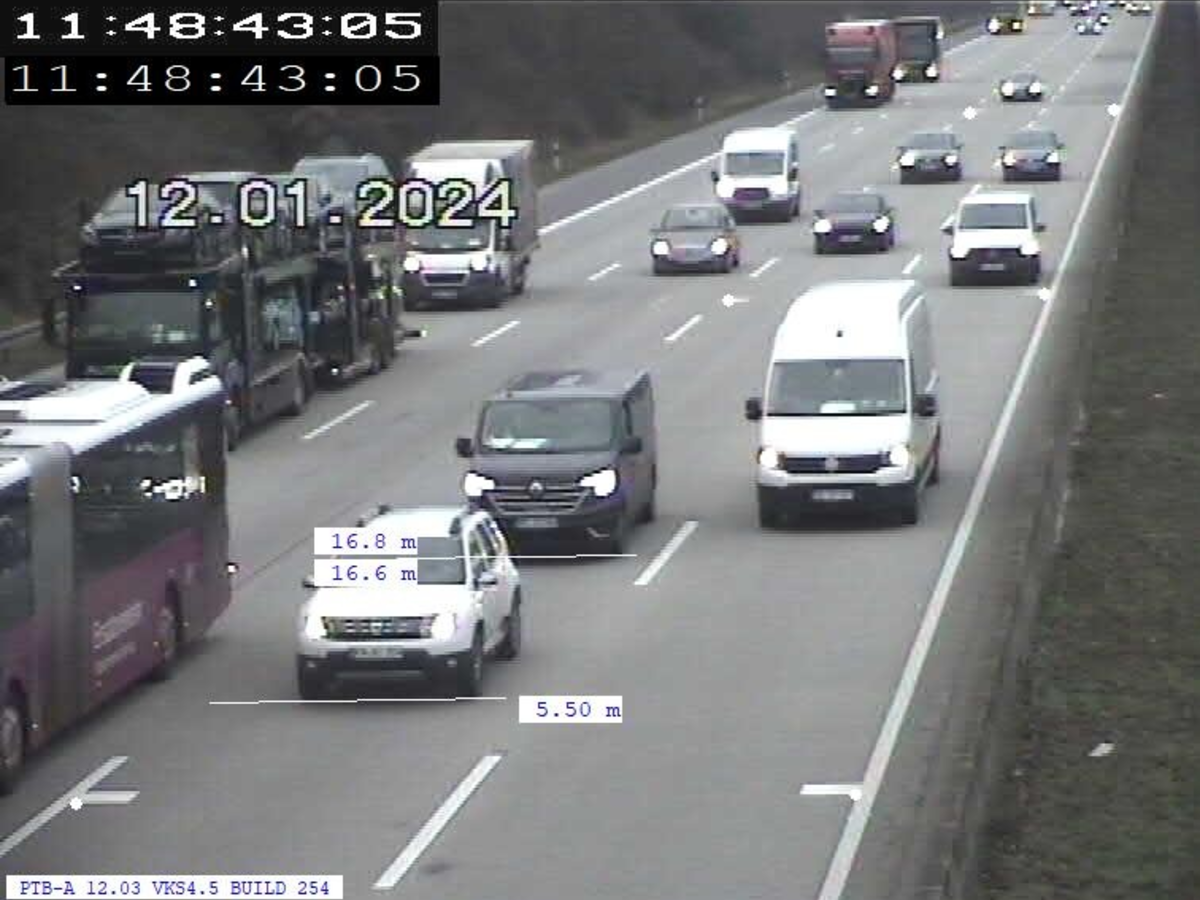 Bei sechs Fahrzeugführern wurde der Sicherheitsabstand zu ihrem Vordermann so weit unterschritten, dass auf sie ein Fahrverbot von einem Monat zukommt. Eine derartige Unterschreitung liegt vor, wenn der Sicherheitsabstand lediglich 3/10 des halben Tachowertes beträgt.