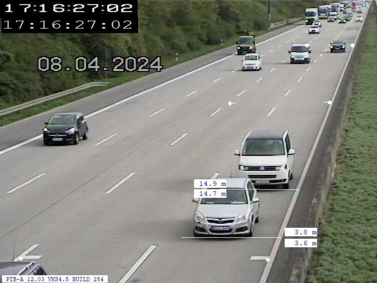 Bei 14 Fahrzeugführern wurde der Sicherheitsabstand zu ihrem Vordermann so weit unterschritten, dass auf sie ein Fahrverbot von einem Monat zukommt. Eine derartige Unterschreitung liegt vor, wenn der Sicherheitsabstand lediglich 3/10 des halben Tachowertes beträgt.