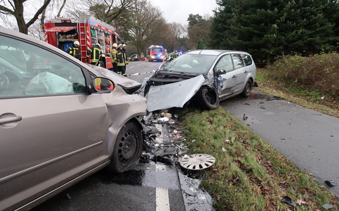 Delmenhorst - Zu einem schweren Verkehrsunfall mit drei beteiligten Pkw und einer Schwerverletzten sowie zwei leichtverletzten Personen kam es am Freitag, 22.12.2023, gegen 13:00 Uhr auf der Wildeshauser Straße in Kirchhatten. Eine 48-Jährige aus der Gemeinde Hatten befuhr dabei mit dem Pkw die Wildeshauser Straße von Neerstedt in Rtg. Kirchhatten und kam dann in einer leichten Linkskurve aus Unachtsamkeit nach rechts von der Straße ab. Nach einer Gegenlenkbewegung verlor sie die Kontrolle über das Fahrzeug, das auf die Gegenfahrbahn geriet, hier zunächst mit dem entgegenkommenden Pkw einer 50-Jährigen aus der Gemeinde Hatten zusammenstieß, bevor es zu einem Frontalzusammenstoß mit einem weiteren, in Rtg. Neerstedt fahrenden Pkw kam, in dem sich eine 54-Jährige aus Dötlingen befand. Die 50-Jährige, die schwerverletzt zunächst in ihrem Pkw eingeklemmt war, wurde von den Kräften der alarmierten Feuerwehren aus Kirchhatten und Neerstedt befreit, bevor sie mit einem Rettungswagen in ein Krankenhaus gebracht wurde. Die Unfallverursacherin zog sich ebenso wie die 54-Jährige Beteiligte leichte Verletzungen zu. Beide wurden zur weiteren Versorgung ebenfalls mit Rettungswagen in Krankenhäuser gebracht. Alle drei beteiligten Fahrzeuge, an denen Totalschäden entstanden, wurden abgeschleppt. Der Gesamtschaden wird auf 25.000 Euro geschätzt. Die Wildeshauser Straße war im Bereich der Unfallstelle zur Unfallaufnahme und Reinigung der Fahrbahn bis ca. 18:00 Uhr vollgesperrt.