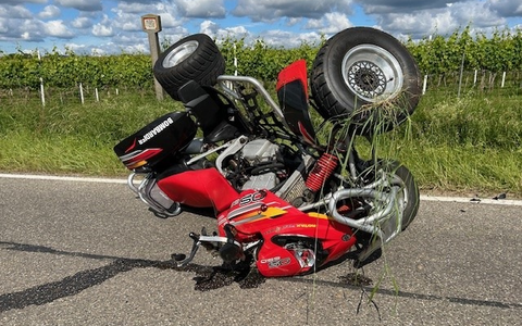 Dierbach - Ein 56 Jahre alter Quad-Fahrer und eine 58 Jahre alte PKW-Fahrerin befuhren am 11.6.24 gg. 09:40 Uhr, die Landstraße 544 vom Kreisel Oberhausen in Fahrtrichtung Niederotterbach. Als sie zu einem langsam fahrenden Fahrzeug der Straßenmeisterei aufschlossen, bremsten beide ab. Nachdem die hinten fahrende PKW-Fahrerin gewartet hatte und der Quad-Fahrer nicht überholte. überholte diese selbst. Als sie sich auf Höhe des Quad-Fahrers befand zog dieser nach links, sah die PKW-Fahrerin im letzten Moment und zog wieder nach rechts. Hierbei übersteuerte er und fuhr in einen parallel verlaufenden Entwässerungsgraben ein. Während der Fahrer hierbei vom Quad flog, rutschte dieses wieder auf die Fahrbahn und überschlug sich, bevor es in Endlage kam. Bei dem Unfall wurde der Quad Fahrer schwer, aber nicht lebensbedrohlich, verletzt. Er wurde durch Rettungshubschrauber in ein Krankenhaus verbracht. Zur Versorgung und Bergung musste die Landstraße kurz vollgesperrt werden. Zeugen können sich bei der Polizeiinspektion Bad Bergzabern, Tel.: 0634393340 melden.
