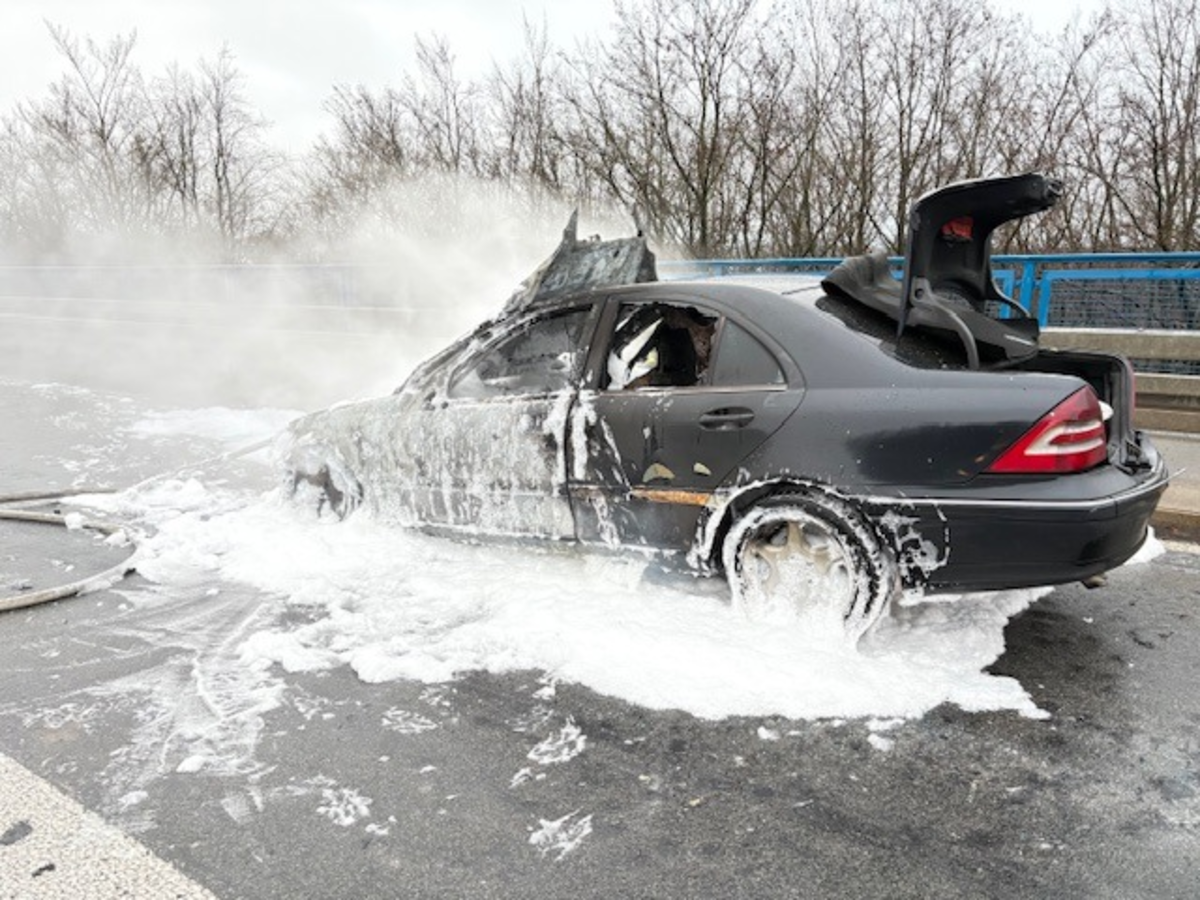 Dortmund - Am Dienstagmorgen wurde die Feuerwehr um 8:30 Uhr auf die BAB 45 in Richtung Oberhausen alarmiert. Gemeldet wurde ein brennendes Auto im Bereich des Autobahnkreuzes Dortmund-Süd. Die Insassen konnten den PKW rechtzeitig auf dem Seitenstreifen am Ende der Beschleunigungsspur abstellen und sicher verlassen. Bereits auf der Anfahrt war eine Rauchsäule deutlich sichtbar. Bei Eintreffen der Feuerwehr standen die Personen aus dem Fahrzeug in sicherer Entfernung zum Feuer und wurden von Ersthelfern und der Polizei betreut. Glücklicherweise war niemand von ihnen verletzt, sodass sich die Einsatzkräfte auf die Löschmaßnahmen des brennenden Pkw konzentrieren konnten. Der Verkehr musste während des Einsatzes für die Löschmaßnahmen auf eine Fahrspur begrenzt werden. Ein Trupp unter Atemschutz löschte das Auto zunächst mit einem Strahlrohr ab, bevor Löschschaum eingesetzt wurde. Die Ursache des Brandes wird durch die Polizei ermittelt. Bei dem knapp einstündigen Einsatz wurden 11 Einsatzkräfte der Feuerwache 4 aus Hörde eingesetzt.