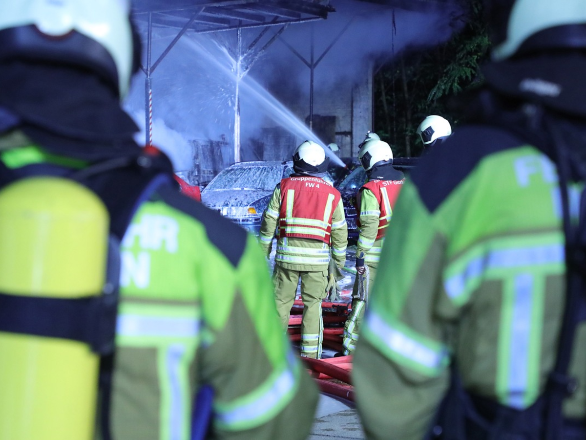Die Feuerwehr wurde alarmiert, weil Passanten Flammen auf einem Dach beobachtet hatten. Als die ersten EinsatzkrĂ€fte die Einsatzstelle erreichten, befand sich ein Unterstand von etwa 40 Meter x 10 Meter GröĂe im Vollbrand. Darunter standen drei PKWs, welche von den Flammen bereits vollstĂ€ndig erfasst waren. Der Brand war so weit fortgeschritten, dass die Flammen auch auf das Dach sowie benachbarte Vegetation ĂŒbergriffen hatten. Durch den Einsatzleiter wurden sofort weitere KrĂ€fte nachgefordert. Von zwei Seiten aus fĂŒhrten die EinsatzkrĂ€fte einen umfassenden Löschangriff durch. Zeitweise waren bis zu vier Strahlrohre gleichzeitig im Einsatz. Durch die Freiwillige Feuerwehr wurde eine stabile Löschwasserversorgung aufgebaut. Um die BrandbekĂ€mpfung so effektiv wie möglich zu gestalten, wurde neben Wasser auch Löschschaum als Löschmittel eingesetzt. WĂ€hrend der Löscharbeiten versagten Teile des Dachtragwerkes und es kam zum Teileinsturz. Nachdem der Brand bekĂ€mpft war, wurde mit WĂ€rmebildkameras nach Glutnestern gesucht und eine Restablöschung durchgefĂŒhrt. Personen kamen bei diesem Einsatz nicht zu Schaden. Die Polizei hat die Ermittlungen zur Brandursache aufgenommen. Im Einsatz waren 62 EinsatzkrĂ€fte der Feuer- und Rettungswachen Ăbigau, Striesen, Löbtau und Altstadt, der Rettungswache Löbtau, der B-Dienst sowie der U-Dienst.
