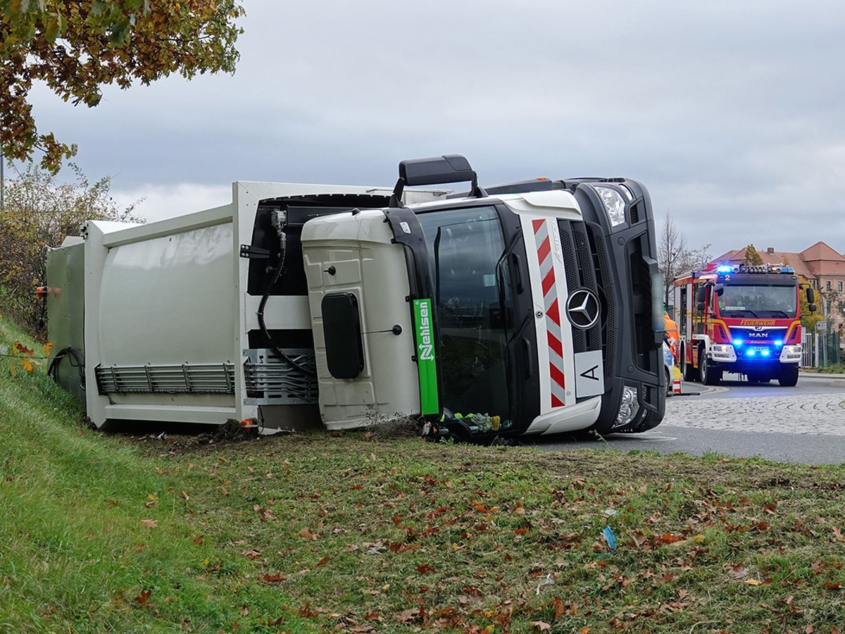 Aus noch zu ermittelnder Ursache war ein Müllfahrzeug in einem Kreisverkehr umgekippt. Dabei wurden zwei Personen verletzt, welche vom Rettungsdienst medizinisch versorgt wurden. Durch die Feuerwehr wurde das Fahrzeug gesichert und auslaufende Betriebsmittel aufgenommen. Ein Abschleppunternehmen richtete das Fahrzeug wieder auf und schleppte es ab. Die Polizei hat die Ermittlungen zur Unfallursache aufgenommen. Im Einsatz waren 10 Einsatzkräfte der Feuer- und Rettungswachen Übigau und Altstadt sowie der Rettungswache Friedrichstadt.