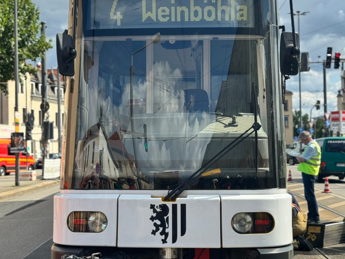 FW Dresden: Straßenbahn entgleist: Einsatzkräfte bringen Tram zurück ins Gleis