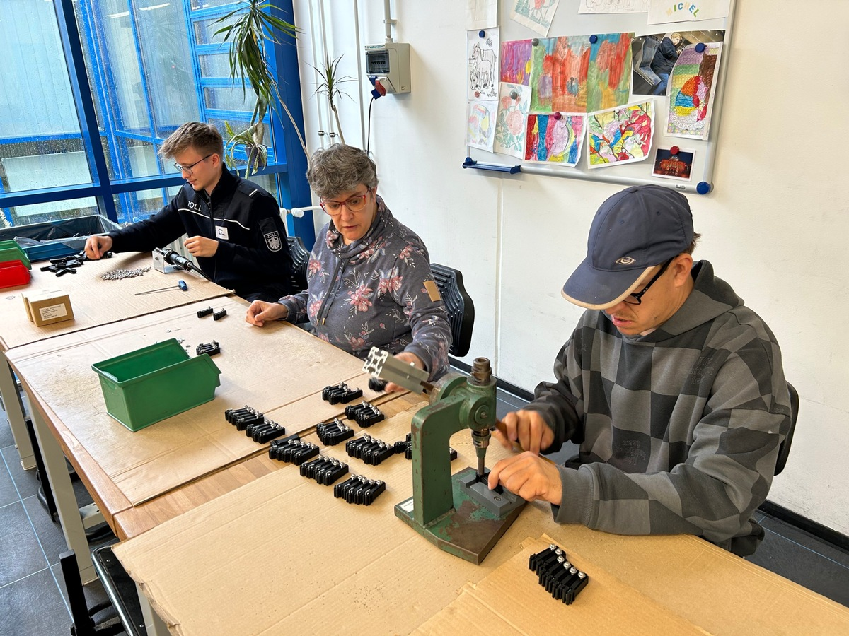 "Vier Zöllnerinnen und Zöllner verrichten heute ihren Dienst in den Partner-WerkstÀtten der Chemnitzer Stadtmission e. V. und helfen in der Elektromontage und der Fertigung von Kunststoff-Kleinteilen mit", so Carlito Klaus, Sprecher des Hauptzollamtes Erfurt. "In der nÀchsten Woche werden uns dann im Gegenzug BeschÀftigte aus den WerkstÀtten am Zollamt Chemnitz besuchen und dort die Arbeit des Zolls nÀher kennenlernen", so Klaus weiter.