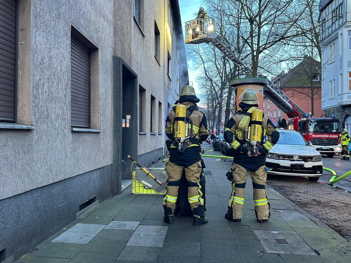 Essen-Altenessen-Süd, Vogelheimer Straße, 24.02.2024, 17:32 Uhr - Gestern Nachmittag, am 24.02.2024 um 17:32 Uhr, gingen mehrere Notrufe in der Leitstelle der Feuerwehr Essen ein, bei denen Anrufende einen Wohnungsbrand in einem Mehrfamilienhaus auf der Vogelheimer Straße in Altenessen-Süd meldeten. Sofort wurden zahlreiche Einsatzkräfte der Feuerwehr und des Rettungsdienstes zur gemeldeten Adresse entsandt. Schon beim Eintreffen des ersten Löschfahrzeuges in der Vogelheimer Straße war die Straße stark verqualmt und aus der Erdgeschosswohnung eines viergeschossigen Mehrfamilienhauses drangen Rauch und Flammen. Unmittelbar vor dem Gebäude standen mehrere Menschen und kümmerten sich um einen verletzten Anwohner, der vermutlich von Nachbarn aus der Brandwohnung gerettet wurde. Nach der ersten Erkundung wurde sofort die medizinische Versorgung des Verletzten eingeleitet und ein Trupp unter Atemschutz zur Menschenrettung und Brandbekämpfung eingesetzt. Der verletzte Bewohner der Brandwohnung musste nach notärztlicher Versorgung mit einem Rettungswagen in ein Krankenhaus transportiert werden. Durch die offenstehende Wohnungstür der brennenden Wohnung war der Treppenraum vollständig verrucht, weshalb dieser durch einen weiteren Atemschutztrupp auf Personen kontrolliert wurde. Insgesamt waren mehrere Personen dem Brandrauch ausgesetzt. Nach einer medizinischen Untersuchung mussten jedoch glücklicherweise keine weiten Personen in Klinken transportiert werden. In der Brandwohnung selbst konnte der Brand mit einem handgeführten Strahlrohr schnell unter Kontrolle gebracht werden. Durch die starke Rauchentwicklung und viele offenstehende Fenster mussten alle Wohnungen in dem Gebäude kontrolliert werden. Nachdem sich teilweise gewaltsam Zutritt zu den Wohnungen verschafft werden musste, wurden umfangreiche Kontrollmessungen durchgeführt. Durch den Einsatz von Hochleistungslüftern konnten alle Wohnungen, bis auf die Brandwohnung, effektiv entraucht werden. Die Anwohnerinnen und Anwohner konnten so nach Abschluss des Feuerwehreinsatzes wieder in ihre Wohnungen zurückkehren. Die Brandwohnung ist derzeit unbewohnbar.