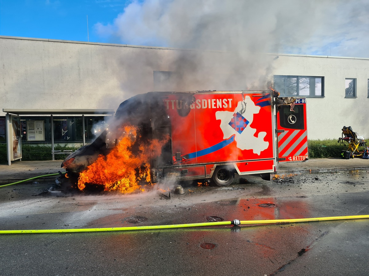 FW-E: Rettungswagen steht in Vollbrand - keine Personen verletzt