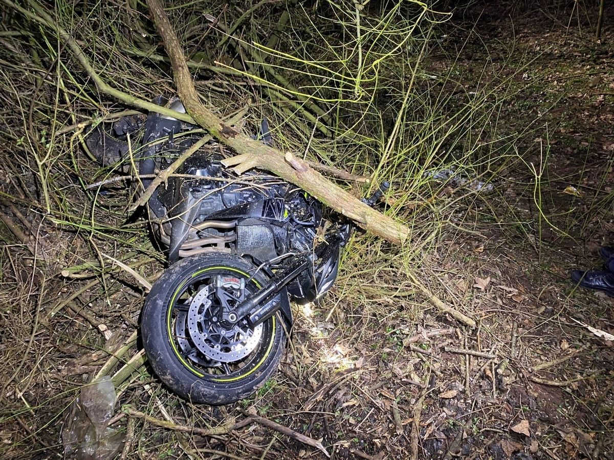 22.02.2025 - 08:36:35 | presseportal.deNach den derzeitigen Erkenntnissen war der Mann aus dem Landkreis Kaiserslautern von Hirschhorn kommend Richtung Weilerbach unterwegs, als er zwei vor ihm fahrende Autos überholte. Noch während des Überholvorgangs verlor er die Kontrolle über sein Motorrad des Typs Kawasaki Z1000 und geriet ins Schlingern. Er kam mit seiner Maschine von der Fahrbahn ab, befuhr den angrenzenden Grünstreifen und stürzte schließlich in abschüssigem Gelände.