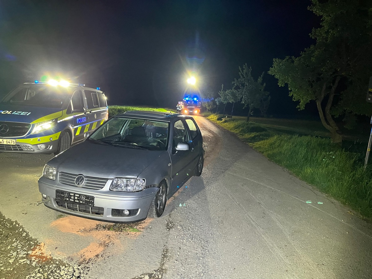 Der bislang unbekannte Fahrzeugführer befuhr mit dem grauen VW Polo den Kleeweg aus Richtung Wewelsburg kommend in Fahrtrichtung Niederntudorf. Er beschleunigte stark, verlor die Kontrolle über das Auto und kam nach rechts von der Fahrbahn ab. In der Folge kollidierte der Pkw im Grünstreifen mit einem Baumsetzling und geriet anschließend in das angrenzende Feld. Von dort lenkte der Fahrer den Wagen zurück auf den Kleeweg. Einige Meter weiter kam der Pkw erneut nach rechts von der Fahrbahn ab und geriet erneut in das angrenzende Feld. Auch in diesem Fall wurde das Fahrzeug wieder auf den Feldweg zurückgelenkt. Durch die wiederholte Geländebefahrung wurde vermutlich der Unterboden des Fahrzeugs beschädigt, sodass es zum Austritt von Motoröl kam. Anschließend befuhr der Fahrzeugführer den Kleeweg in entgegengesetzter Richtung zurück in Fahrtrichtung Wewelsburg. Das Auto wurde schließlich unmittelbar hinter dem Einmündungsbereich Kleeweg/Im Klegg im rechtsseitig verlaufenden Grünstreifen in Fahrtrichtung Wewelsburg abgestellt.