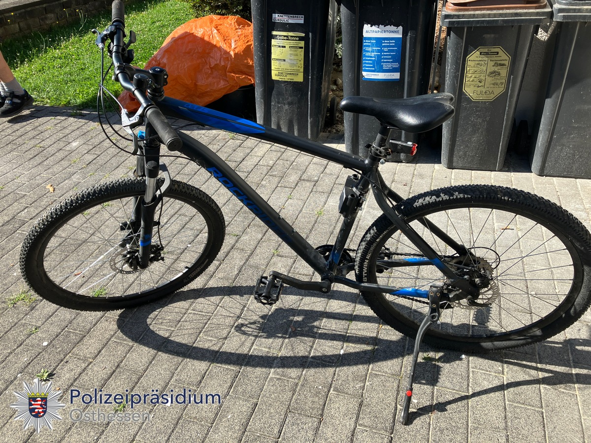 Fulda. Ein aufmerksamer Zeuge informierte die Polizei, dass in der Nacht zu Dienstag (06.08.) eine kleinere Personengruppe - augenscheinlich Jugendliche - versucht haben sollen, in der Von-Galen-Straße mehrere Pkw zu öffnen. Als der Anwohner auf sich aufmerksam machte, flüchteten die Unbekannten umgehend und ließen ein Fahrrad vor Ort zurück. Beamte der Polizeistation Fulda stellten dieses kurz darauf sicher. Es handelt sich dabei um ein schwarzes Fahrrad mit blauen Applikationen des Herstellers "Rockrider" (Modell: ST 120, Rahmengröße XL). An dem Zweirad ist eine Halterung für ein Kindersitz angebracht. Da nicht auszuschließen ist, dass dieses zuvor gestohlen wurde, werden Zeugen gebeten, die Hinweise zur Herkunft des Fahrrads geben können, sich mit der Polizei unter 0661/105-0 in Verbindung zu setzen.