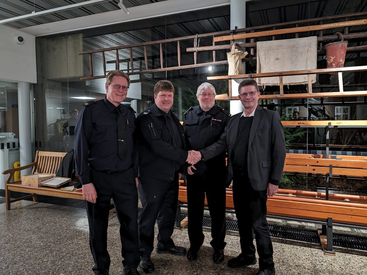 26.02.2024 - 14:07:45 | presseportal.deStadtrat Peter Skusa, Dezernent der Feuerwehr, und Olaf Jongeling, stellvertretender Leiter der Feuerwehr Bremerhaven, nahmen an der Jahreshauptversammlung teil, dankten der Freiwilligen Feuerwehr Wulsdorf für ihr Engagement und stellten die Wichtigkeit des Ehrenamtes heraus.