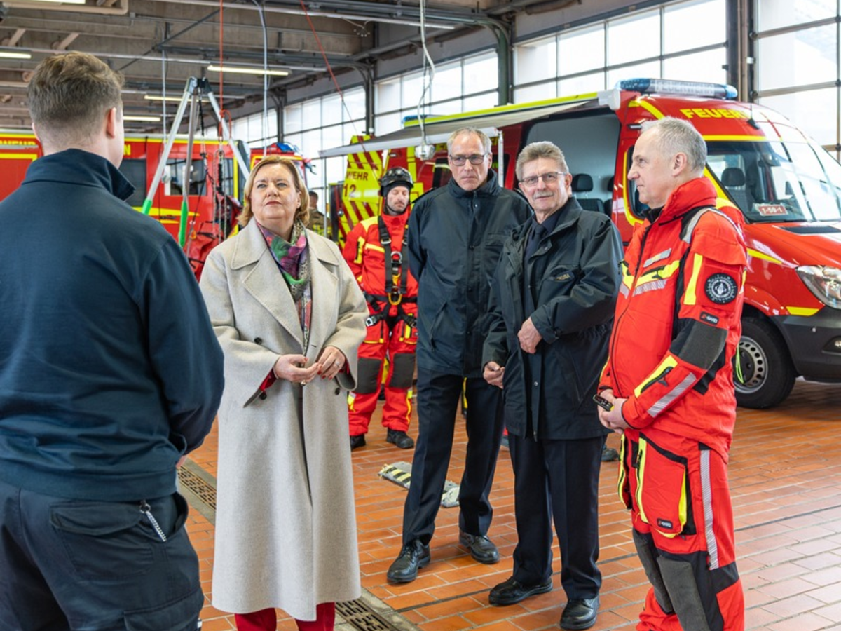 Empfangen wurde Dr. Eva Högl vom Feuerwehrdezernenten, Stadtrat Peter Skusa, sowie vom Leiter der Feuerwehr Bremerhaven, Jens Cordes. Im Mittelpunkt des Besuchs stand ein umfassender Einblick in die Arbeit und die vielfältigen Aufgabenbereiche der Feuerwehr in der Seestadt.