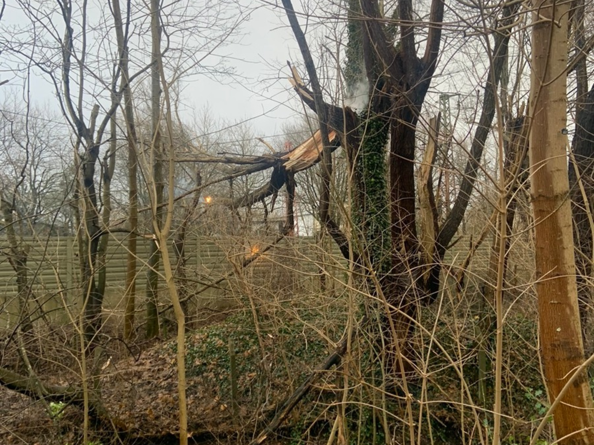 In der Ziegeleistraße wurde durch den Sturm ein Dach eines Einfamilienhauses leicht beschädigt. In der Straße Am Oberhamm knickte in Höhe der Bahnschienen ein größerer Ast eines Baumes ab und stürzte auf eine Stromleitung. Dadurch brannten teile des Astes. Die Bahnstrecke wurde zwischenzeitlich voll gesperrt. Das Feuer erlosch, nachdem die Leitung stromlos geschaltet wurde. Die Beseitigung des Astes übernahm die Deutsche Bahn.