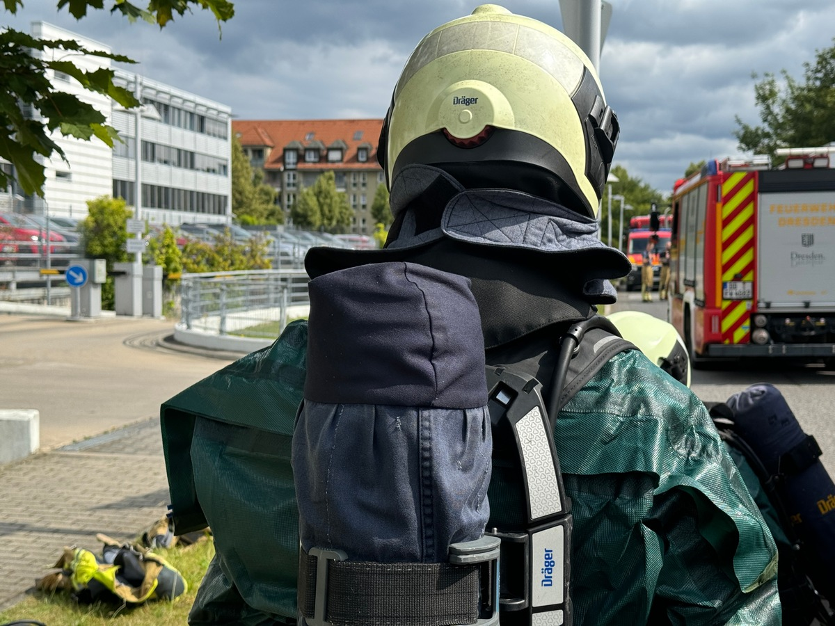 Die automatische Brandmeldeanlage hatte die Feuerwehr in das Frauenhofer-Institut alarmiert. Als die Einsatzkräfte die Einsatzstelle erreichten, war ein deutlicher Brandgeruch wahrnehmbar. Aus noch zu ermittelnder Ursache waren in einer Entsorgungstonne gelagerte Gegenstände in Brand geraten. Der Brandrauch breitete sich in dem betroffenen Raum im dritten Obergeschoss aus. Ein Trupp unter Atemschutz nahm die Brandbekämpfung auf und löschte die Flammen. Die Mitarbeiter des Institutes konnten sich aus eigener Kraft ins Freie retten und blieben unverletzt. Da sich in unmittelbarer Nähe des Brandherdes verschiedene Gefahrstoffe befanden, konnte nicht ausgeschlossen werden, dass diese durch den Brand Reaktionsprodukte entwickelt haben. Aus diesem Grund wurden die Spezialisten zur ABC-Gefahrenabwehr der Wache Übigau sowie der Stadtteilfeuerwehr Langebrück hinzugezogen. Mit Schutzanzügen ausgestattet führten diese Einsatzkräfte im Gebäude Messungen durch, die jedoch keine kritischen Ergebnisse lieferten. Die Einsatzmaßnahmen sin dabgeschlossen. Für die Dauer des Einsatzes kam es im Bereich der Winterbergstraße zu Verkehrsbehinderungen. Im Einsatz waren 60 Einsatzkräfte der Feuer- und Rettungswachen Übigau, Striesen und Löbtau, der B-Dienst, der U-Dienst sowie die Stadtteilfeuerwehr Langebrück.