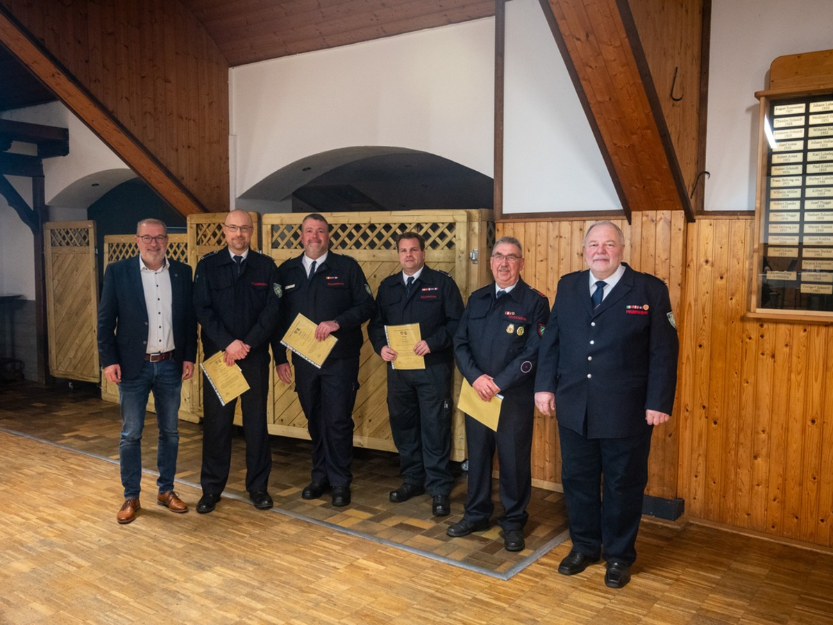 Feuerwehrehrenzeichen in Silber (25-jähriges Dienstjubiläum) Andreas Kozik, Benedikt Müller, Axel Schulte