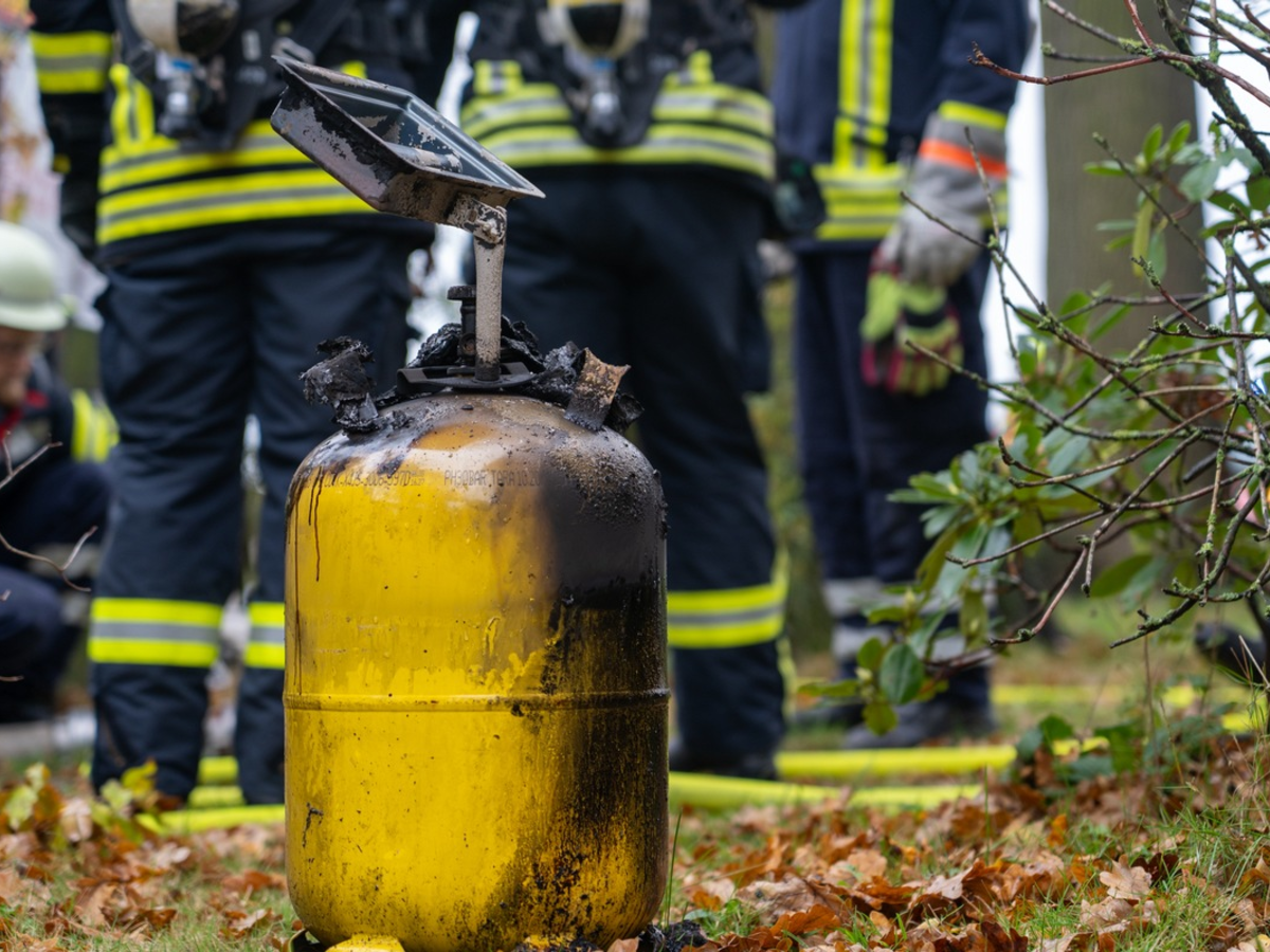 Nachdem das Gebäude vom Rauch befreit war, fanden die Einsatzkräfte eine stark beschädigte Gasflasche vor, welche im Rahmen der weiteren Gefahrenabwehr aus den Räumlichkeiten entfernt wurde. Zudem konnte durch den Atemschutztrupp ein weiteres, kleines Glutnest im Nahbereich der Gasflasche aufgespürt und abgelöscht werden.