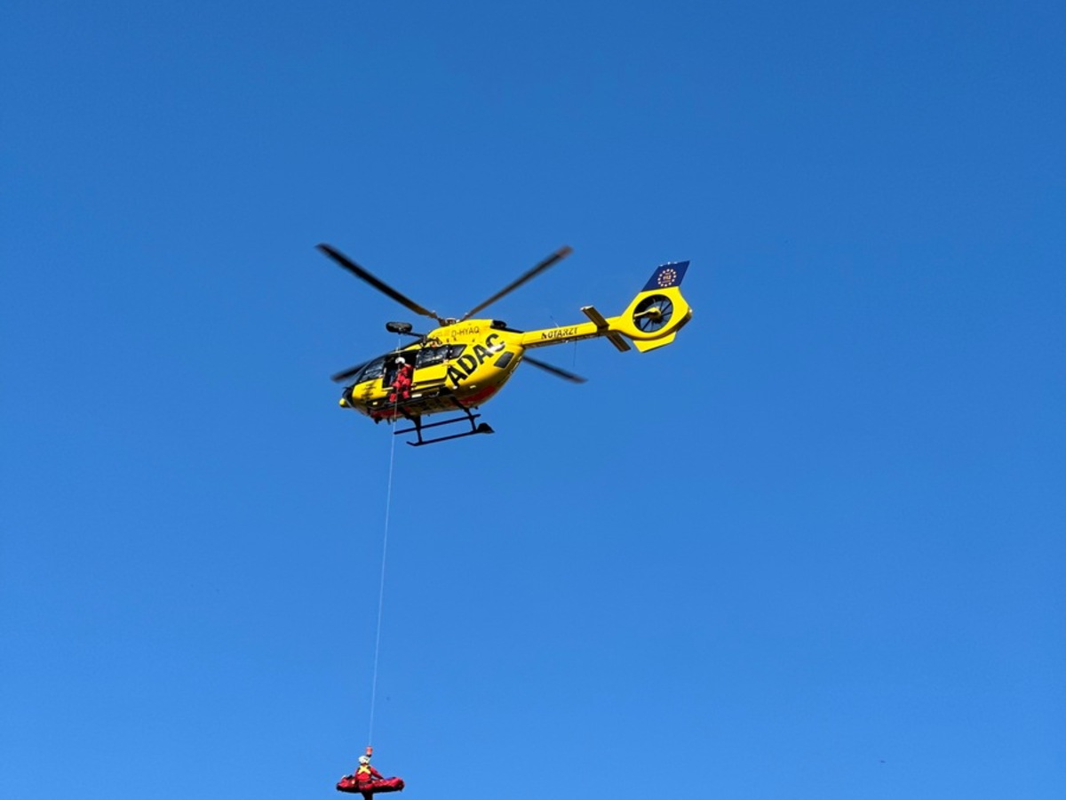 Bad Dürkheim / Frankenthal (Pfalz) - Großer Erfolg für die Frankenthaler Rettungshundestaffel! Am gestrigen Sonntag den 23. Juni 2024, wurde die Facheinheit Rettungshunde/Ortungstechnik der Feuerwehr Frankenthal zu einer bereits seit über 30 Stunden dauernden Vermisstensuche in Bad Dürkheim hinzugezogen. Bereits mehrere Hundestaffeln sowie Polizei und Feuerwehr suchten seit Samstagfrüh einen 80-jährigen demenzkranken Mann, der seit Freitagabend vermisst wurde. Verschiedene Spuren wurden seither ohne Erfolg abgearbeitet. Gegen 14 Uhr kam die Rettungshundeeinheit aus Frankenthal in Bad Dürkheim an. Nach einer Fachberatung im Rahmen der Vermisstensuche wurden verschiedene Einsatzgebiete ausgearbeitet und eingeteilt, unter anderem auch eins unweit der Klinik, wo der 80-jährige Mann vermisst gemeldet wurde. Die Flächensuchhunde der Einheit Frankenthal übernahmen das sehr unwegsame Gelände und schickten ihre Hunde dort hinein. Innerhalb kürzester Zeit konnte die Person von einem Flächensuchhund dort gefunden werden. Da der Mann bereits längere Zeit dort gelegen hat, musste die Rettung zügig eingeleitet werden. Kompliziert wurde die Rettung, da das Gelände extrem steil, unwegsam und zugewachsen war. Feuerwehrkräfte der Feuerwehr Bad Dürkheim schnitten mit Kettensägen den Weg frei, versuchten einen Zugang zu schaffen. Gleichzeitig versorgte der Rettungsdienst samt Notarzt die Person an der Unfallstelle. Um aus diesem schwierigen Gelände eine sichere Rettung der Person durchzuführen, wurde die Facheinheit "Spezielles Retten aus Höhen und Tiefen" (SRHT) der Feuerwehr Frankenthal hinzugezogen. Im Rahmen der Absprachen wurde gleichzeitig die SRHT-Einheit der Feuerwehr Kaiserslautern alarmiert und mit einem Hubschrauber an die Einsatzstelle verbracht. Schlussendlich wurde die spektakuläre Rettung durch den Hubschrauber Christoph 66 vollzogen. Dieser setzte den Höhenretter nicht nur mit einem Seil an der Einsatzstelle ab, er nahm im Anschluss auch die verletzte Person mit einer speziellen Trage auf und brachte sie in die BG-Unfallklinik. Ein extrem aufwendiger, stressiger Einsatz, der von allen Einsatzkräften viel abverlangt hat. Durch die gute Zusammenarbeit aller, konnte die Person letztendlich gefunden und gerettet werden. Im Einsatz waren die Feuerwehr Bad Dürkheim, die Motorradstaffel der Feuerwehr Neustadt (Kradretter), die Polizei Bad Dürkheim, der Rettungsdienst, Notarzt des Deutschen Roten Kreuzes, der Hubschrauber Christoph 66 ADAC. Die Rettungshundeeinheiten kamen aus verschiedenen Organisationen unter anderem die Rettungshunde/Ortungstechnik (RHOT) IV der Feuerwehr Frankenthal, die RHOT VII Feuerwehr Zweibrücken, BRH Mittelpfalz, BRH Ludwigshafen-Mannheim, Rettungshundestaffel des Landkreises Kaiserslautern, Rettungshunde Weidenthal, Rettungshundestaffel und Drohneneinheit Leininger Land, die Spezialkräfte der Einheit "Spezielles Retten aus Höhen und Tiefen" der Feuerwehr Frankenthal und Berufsfeuerwehr Kaiserslautern.