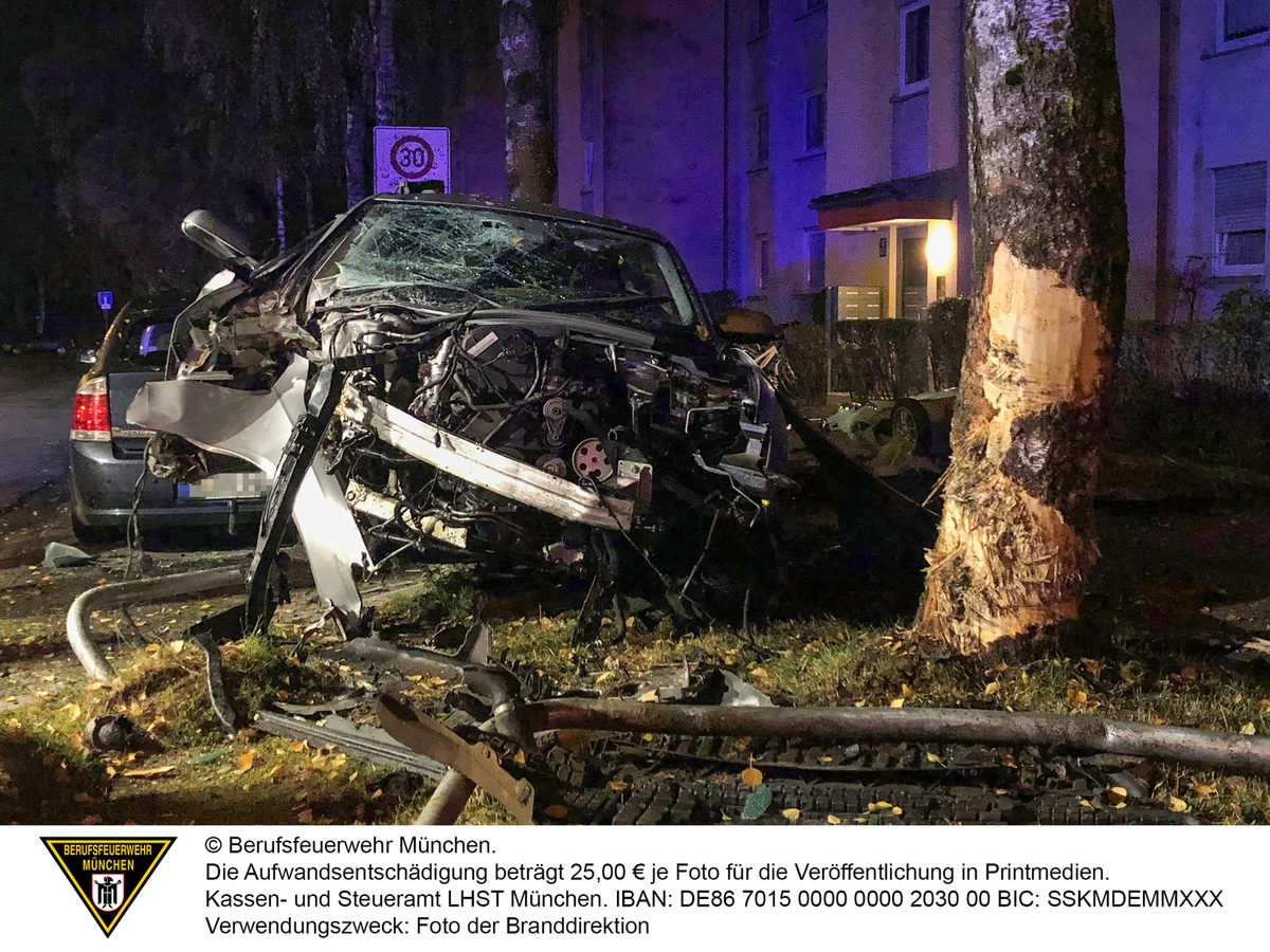 Als kurz darauf die Einsatzkräfte eintrafen, war der Fahrer und ein weiterer Insasse bereits aus dem Fahrzeug gestiegen. Der 22-Jährige lag am Straßenrand, während sein Fahrgast umherlief. Die Rettungsdienst- und Feuerwehrkräfte legten den Fahrer auf eine Trage und begannen mit der Erstversorgung im Fahrzeug. Im Anschluss wurde er in den Schockraum einer Münchner Klinik transportiert. Der Mitfahrer wurde vom Rettungsdienstpersonal untersucht, konnte aber vor Ort bleiben.