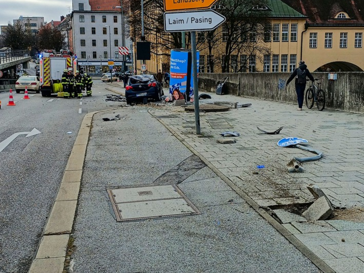 Mehrere Verkehrsteilnehmer beobachteten den Unfall, einer von ihnen rief den Notruf 112. Die kurz darauf eingetroffenen Einsatzkräfte des Rettungsdienstes sahen, dass der 75-Jährige mit seinem Corsa erst ein Verkehrsschild aus dem Boden gerissen und eine Litfaßsäule etwa zehn Meter versetzt und halbiert hat. Als sie sich durch die Trümmerteile durchgeschlängelt hatten, konnten sie eine bereits anwesende Ersthelferin ablösen und mit der Versorgung des schwer Verletzten beginnen. Die Einsatzkräfte der Feuerwehr mussten mit hydraulischem Rettungsgerät die Fahrer Türe entfernen. Nun konnte der Fahrer schonend aus dem Auto gerettet und in den Schockraum einer Münchner Klinik transportiert werden.
