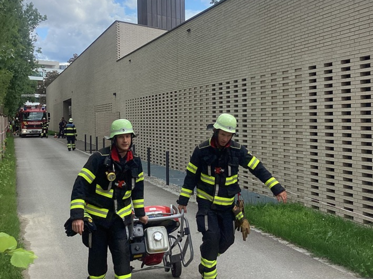 Eigentlich ist ein Feuer in einem Krematorium nichts Ungewöhnliches. Allerdings stellten die Einsatzkräfte beim Eintreffen am Ostfriedhof eine starke Rauchentwicklung im Gebäude auch außerhalb des Verbrennungsofens fest. Grund hierfür war ein technischer Defekt im Ofenschieber. Dieser ließ sich nicht mehr schließen. Dadurch kam es auch zu einer Rauchentwicklung außerhalb des Gebäudes. Zwei Atemschutztrupps sicherten die laufende Verbrennung mit einem Hohlstrahlrohr ab. Anschließend wurde das Gebäude mit vier Hochleistungslüftern entraucht.