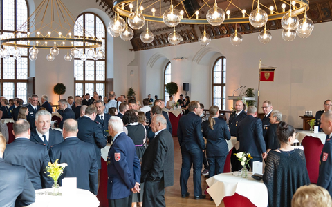 Nach den Ehrungen eröffnete der Stadtbrandrat den Stehempfang. Hier ergab sich die Möglichkeit für alle Anwesenden sich auszutauschen und ins Gespräch über die vergangenen Einsätze und die gemeinsame Arbeit zu kommen.