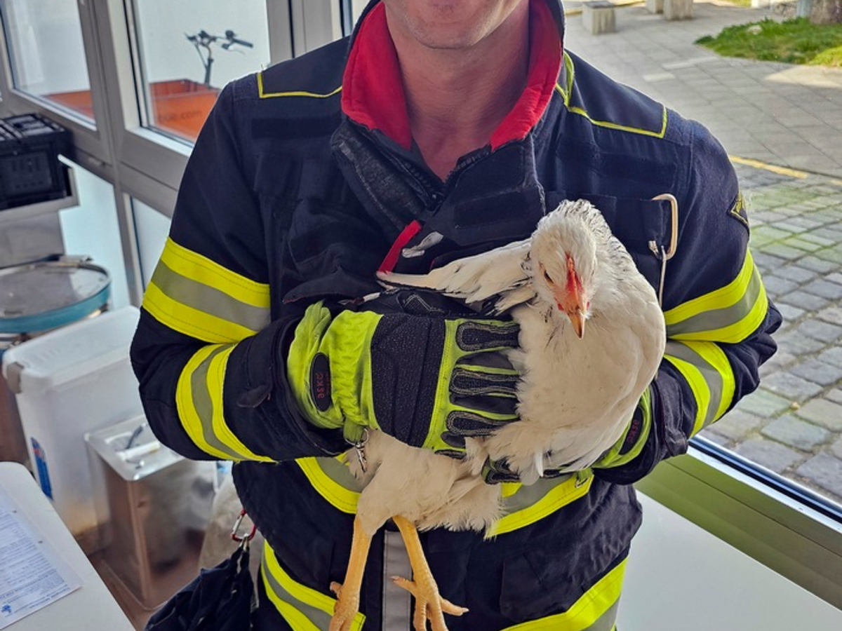 Da es der Polizei nicht möglich war, den Besitzer herauszufinden, aber auch keine Option bestand, das Huhn zu transportieren, wurde die Feuerwehr hinzugerufen.
